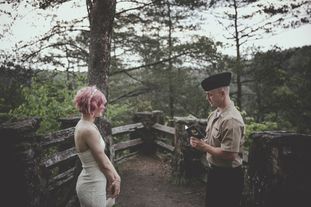 But she likes to keep me on my toes. Every once in awhile she’ll bring in the rain…right up until ceremony time…and then the skies will clear up…just a little…just enough to provide us with a 20 minute window…and as soon as we are finished she’ll start tending to her lovely Red River Gorge once again as we pull out our umbrellas and head back down the trail.