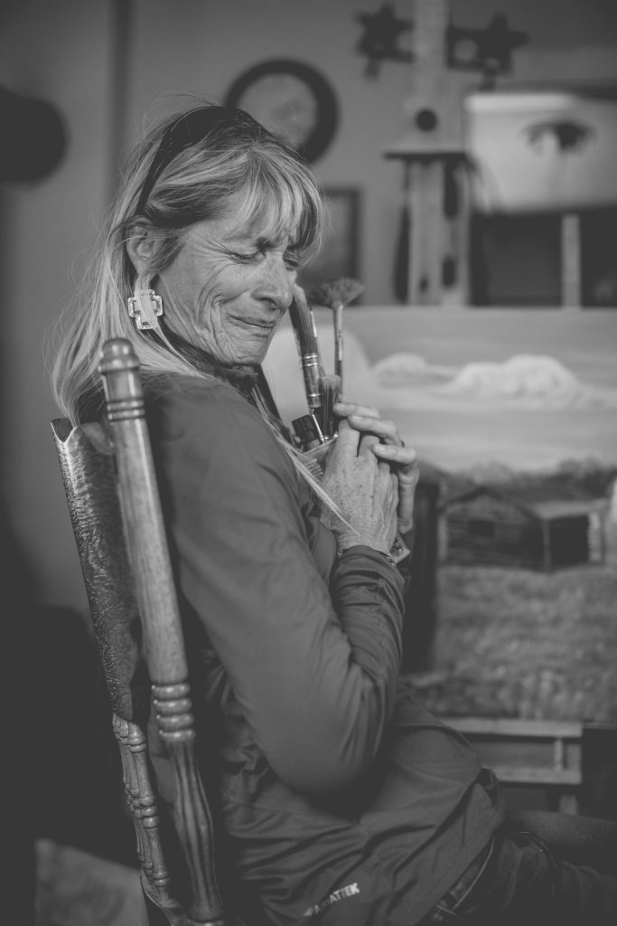 As a photographer, I knew what to do. I quietly backed off and allowed Twyla to have this moment to absorb everything. Her last moment with Wade wasn’t in a hospital room with the EMT wheeling him outside and into the AirCare. It wasn’t surrounded by strangers and machines. Their last moment together was this moment. Him saying goodbye in their special place. A little hideaway where they had planned on retiring together. Up in the mountains to enjoy their days in each other’s company with their long horn cows, horses, cats, and doggies. This is where he wanted their goodbye to be. If it was not to be that way in real life, he made sure it was going to happen in the after life. And that was then I realized the part I played in it. I slowly took out my camera and made sure it was on silent mode. Quietly I asked if I could take photos. Through her tears she only managed to nod her head, giving me permission to document this extremely private moment. A moment that could have only be documented through an outside family member who was not so close to the emotions. Someone who knew how to turn off their feelings and turn on the work mode….just as I had done with every joyful wedding and with every tearful goodbye. So I did just that. Using a long lens and keeping my distance, I allowed her to do what came natural…to absorb…to touch…to feel Wade in his space. My 30 years as a photographer told me when I got what I came to capture so at that point I walked outside and waited in the truck, allowing her time to privately talk to him and tell him the things she hadn’t had a chance to say.
